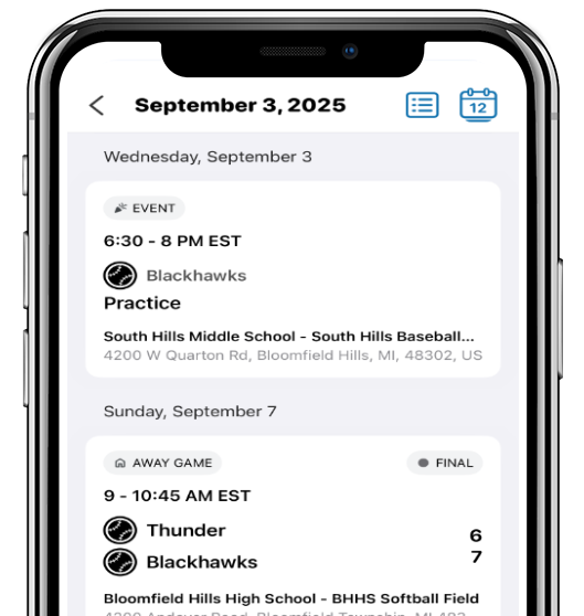 Our league uses the SportsEngine mobile app to keep you connected to everything happening in your child's baseball season.